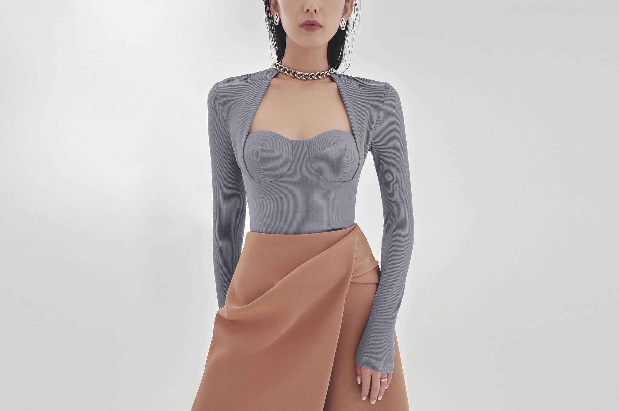 There are countless words that can be used to describe a woman, but perhaps “contemporary” is reserved only to those who seek novelty in everything. Strictly following our motto of “Made of you”, the Fall Winter “SLICE” collection is dedicated to all contemporary and independent women. With cut-out details and accent pleats against the muted natural colours background, the “SLICE” collection depicts the portrait of a modern woman: strong and individualistic. Whether it is the corseted design or the boldly deconstructed ones, each item in the “SLICE” collection portrays impeccable beauty, regardless of how the wearer styles it.