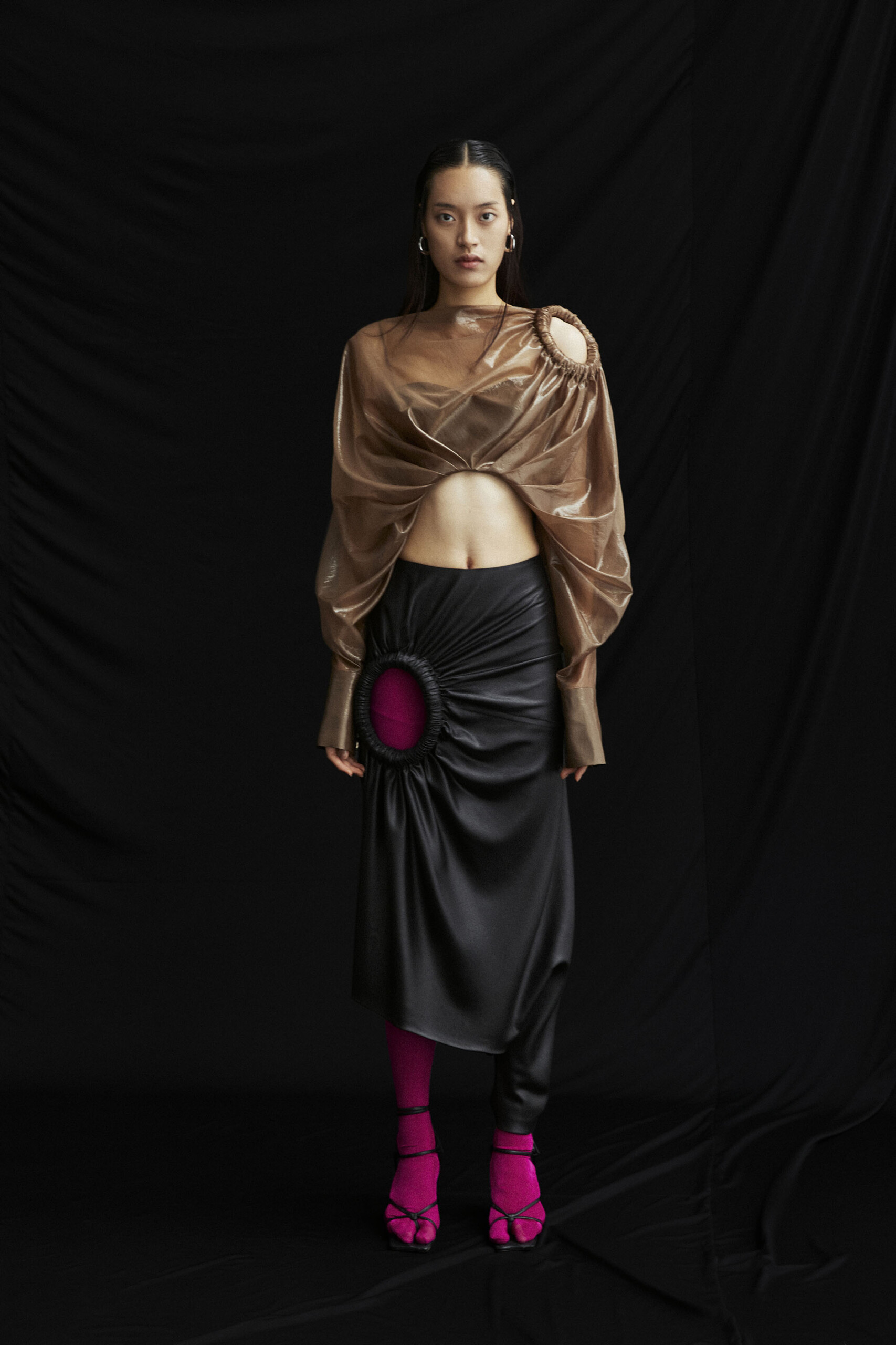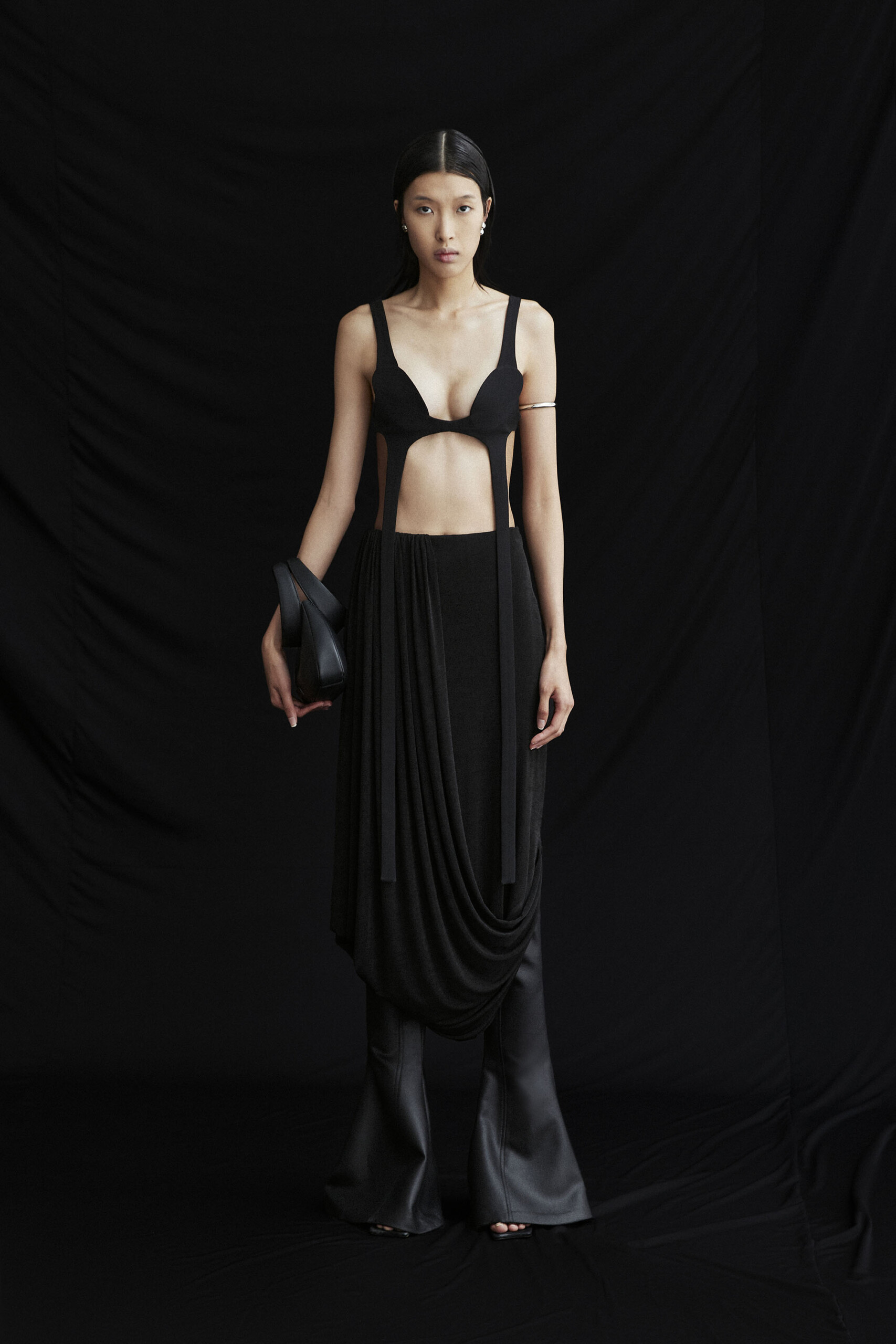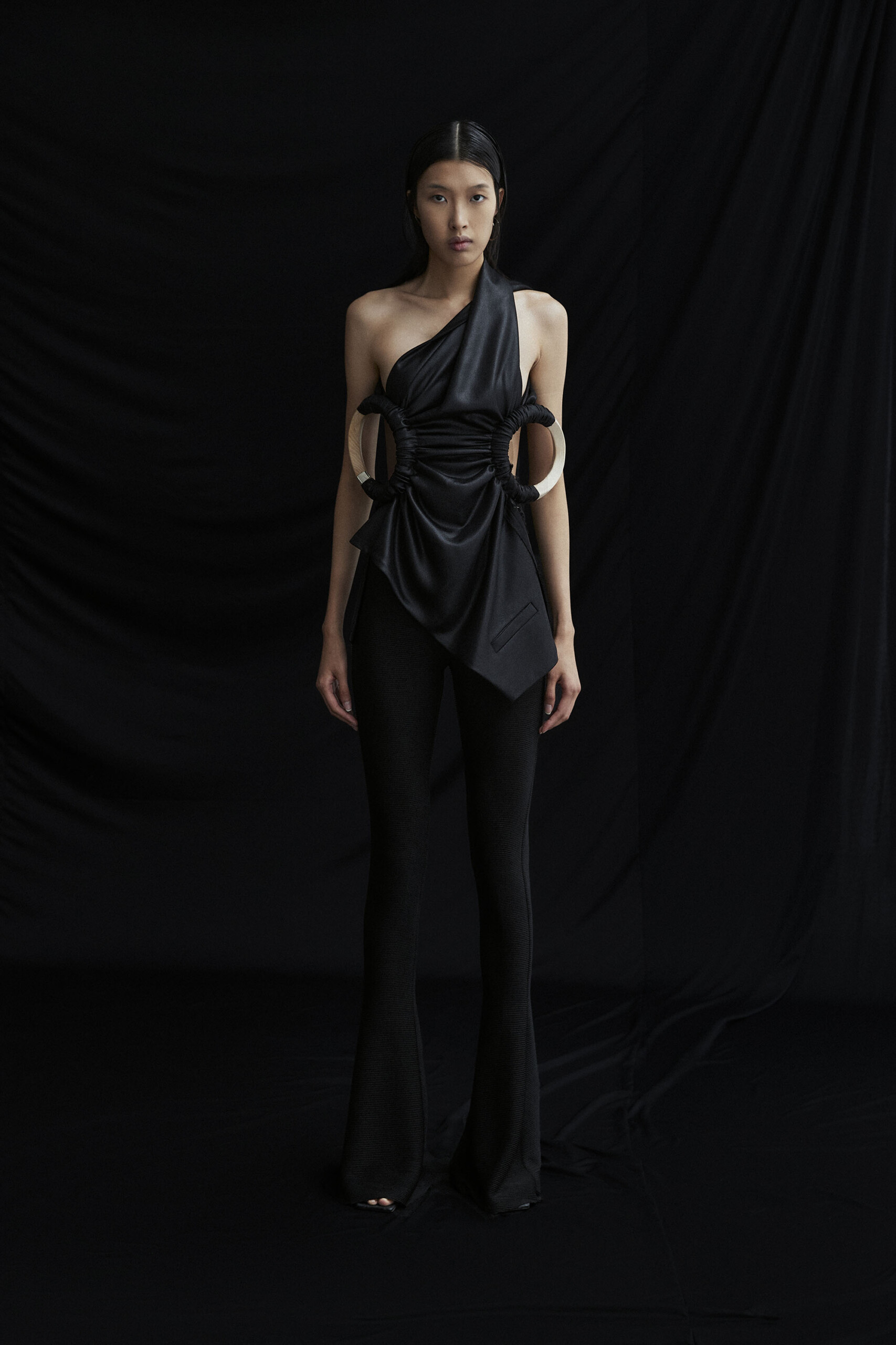 asymmetric pleated trousers
