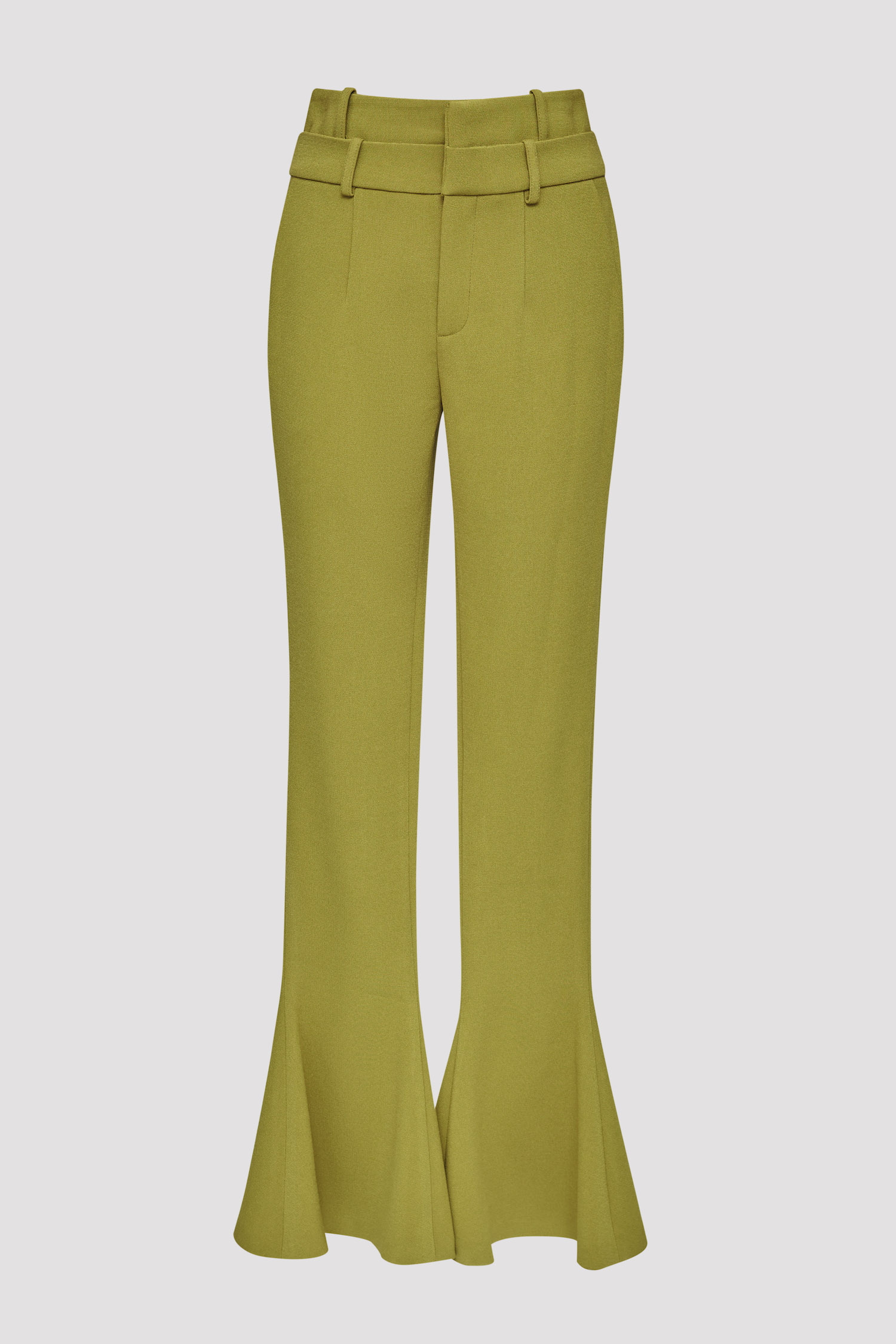 simple flared tailored troursers. crafted from suiting crepe in muted chartreuse.