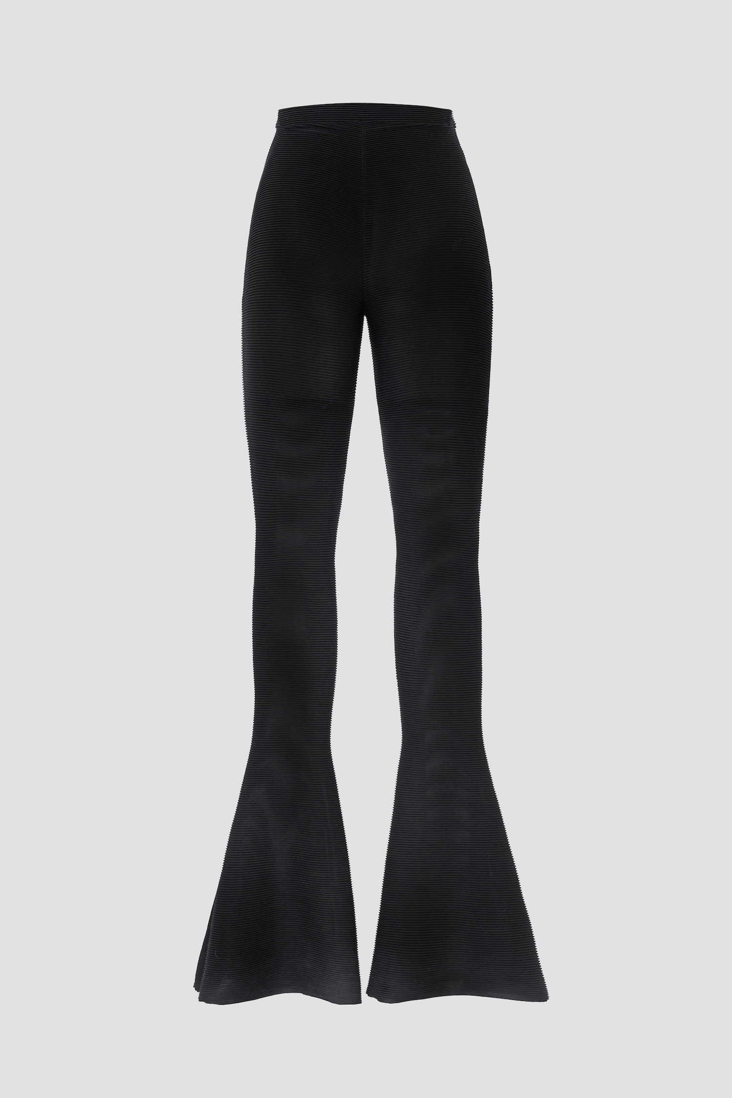 simple flared tailored troursers. crafted from ribbed jersey knit in black.